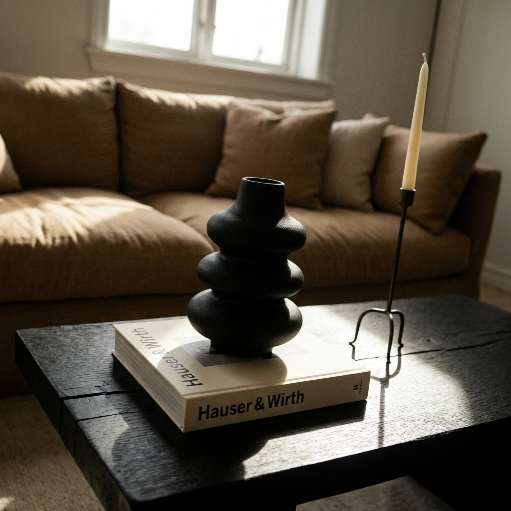 La Nube Nórdica tiene un perfil ondulado y simétrico que lo hace difícil de ignorar. Sus curvas se alternan de arriba a abajo con una regularidad que resulta casi hipnótica, y el acabado texturizado le da la calidez justa para que no parezca demasiado moderno. Una pieza que funciona sola y no necesita compañía.