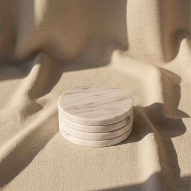 Añade un toque de lujo a tu mesa con estos porta vasos de mármol blanco, perfectos para cualquier ocasión.
